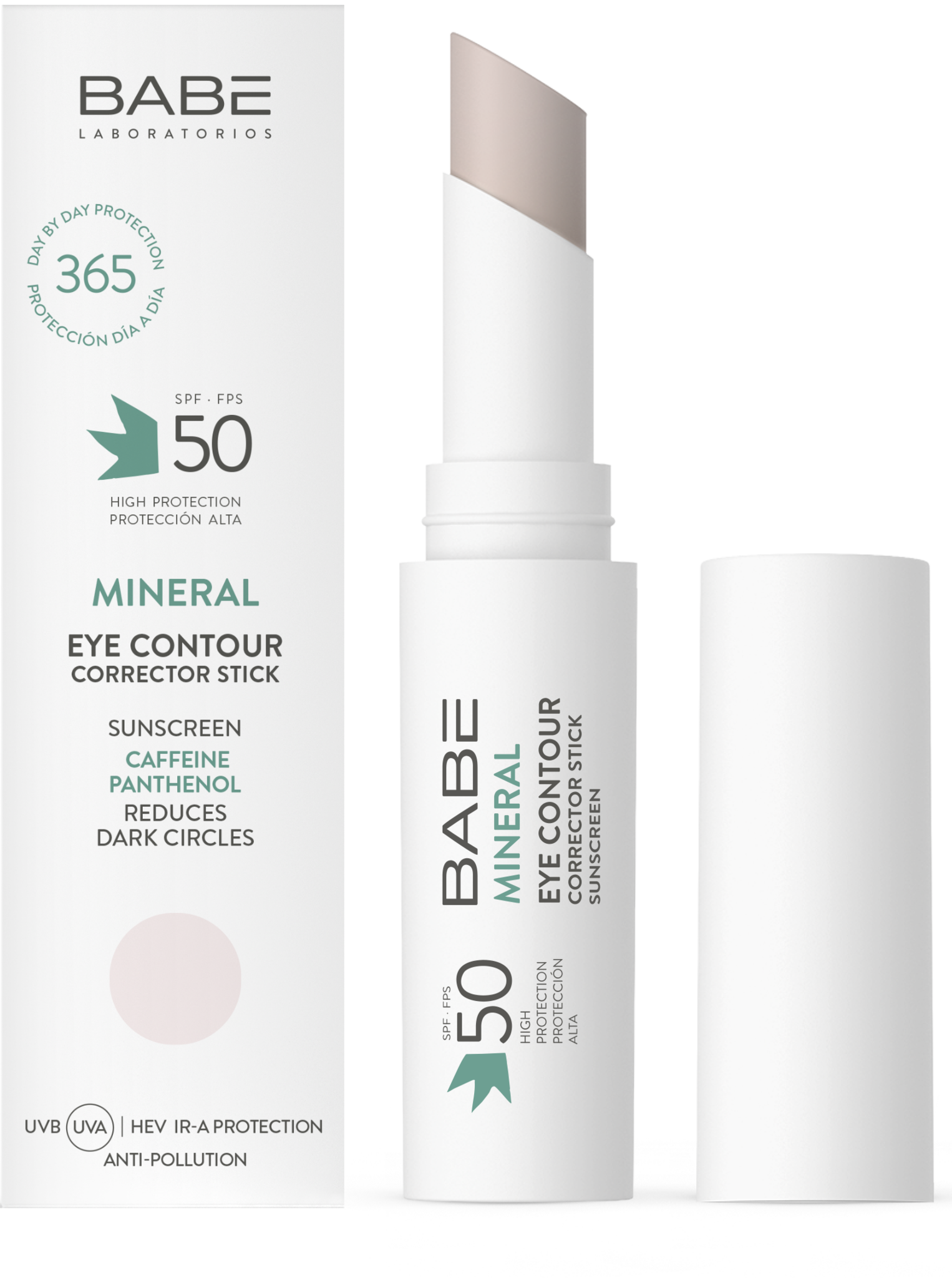 BABÉ Mineral Eye Contour SPF50 est une protection solaire à large spectre sous forme de stick pratique, spécialement conçue pour la peau sensible du contour des yeux. Ce stick contient des filtres 100 % minéraux (SPF50) et offre une protection à large spectre (UVA/UVB/lumière bleue/IR). Les pigments correcteurs ajoutés unifient le teint, atténuent les cernes et donnent un regard frais et lumineux.