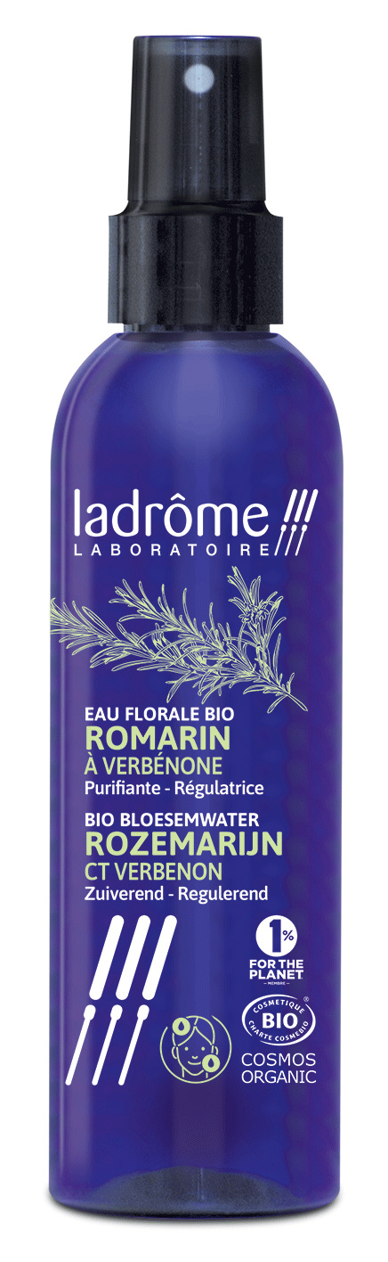 L'eau de Romarin Verbenon est un hydrolat 100% naturel et biologique produit à partir de la distillation à la vapeur d'eau de l'ensemble de la plante de Romarin. Cette eau florale provient du chémotype verbenon, plus rare, une variante particulière de l'espèce romarin qui se caractérise par son action douce et complexe et son arôme raffiné.