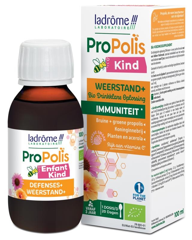 PROPOLIS ENFANT DÉFENSES* de ladrôme est une formule douce, au bon goût fruité, spécifiquement élaboré pour le bien-être des enfants, dès 3 ans, notamment en période de refroidissement, de fatigue ou aux changements de saisons.