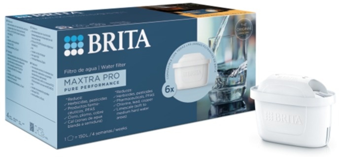 . de BRITA Filterpatronen MAXTRA PRO Pure Performance (6 stuks) verminderen herbiciden, pesticiden, geneesmiddelen, PFAS, chloor, lood, koper en kalk (in zachte tot middelharde watergebieden)